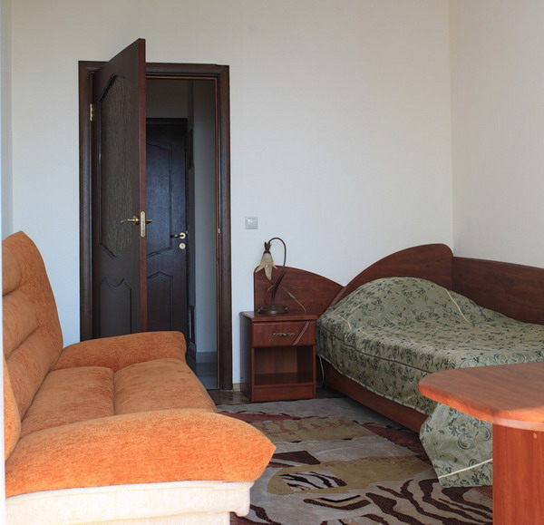2-х местный номер "Люкс" площадью 32 кв.м - макс. 2+2 чел., телевизор, кондиционер, душ, холодильник, 2-х спальная кровать, туалет.
