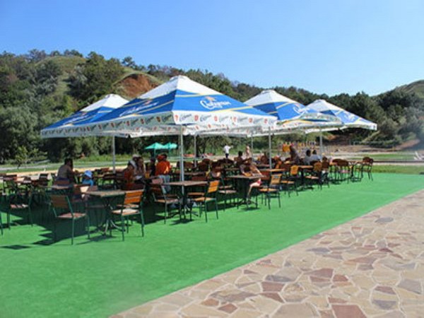 Пляж: Песчано-галечный, собственный в 700 метрах. Бесплатно: навесы, шезлонги, полотенца. Платно: зонтики. Между корпусами и пляжем курсируют два оригинальных автопаровозика на 32 места.