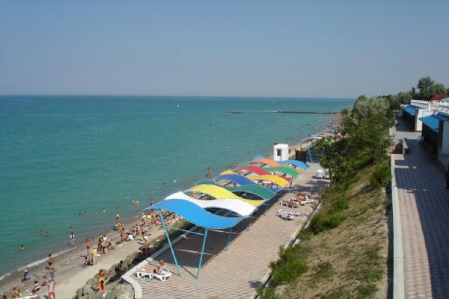 Пляж: в 10-ти - 150-ти метрах от корпусов, мелко-галечный, серпантинная горка, теневые зоны с пластиковыми лежаками, пляжный волейбол, раздевалки, душ, туалет, бары; водные развлечения - бананы, скутеры.