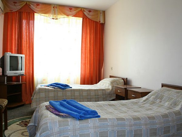 2-х местный номер «Стандарт» площадью 25 кв.м., комната - 21,5 кв.м., 3 деревянные кровати, 3 тумбочки, стол, стулья, шкаф, настенная вешалка, зеркало, спутниковое ТВ, холодильник, кондиционер, набор посуды. Санузел – совмещенный с душем, тазик.