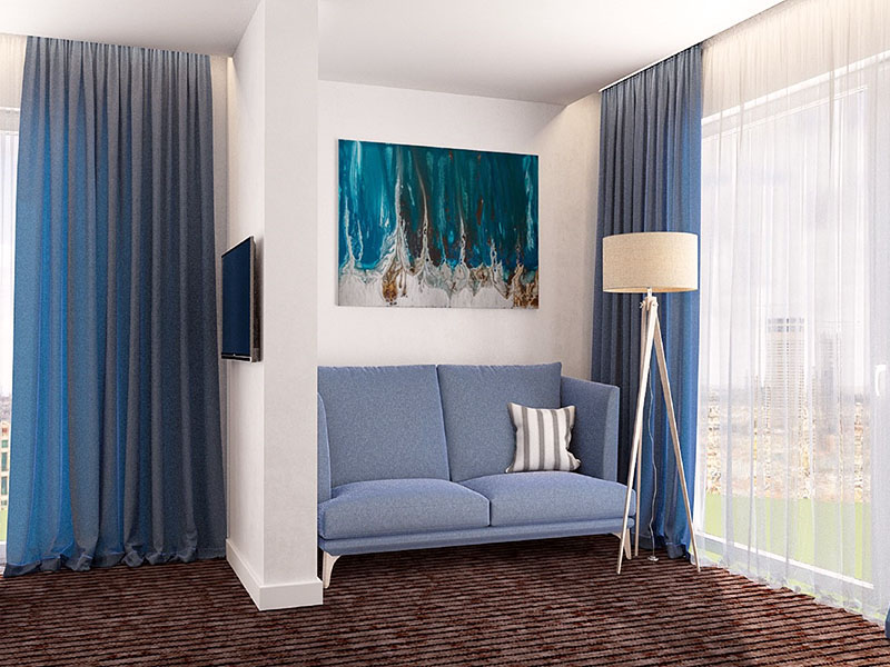 Студия (25 м2) 18 номеров. Дополнительно в номере кухонный гарнитур и микроволновая печь. Возможно размещение 2-х человек на основных местах + 1 дополнительное место для ребенка до 12-ти лет (кресло-кровать). Так же номер подходит для размещения с маленьким ребенком.