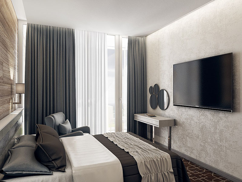 2-х местный 2-х комнатный «Люкс» (40 м2) 12 номеров. Возможно размещение 2-х человек на основных местах + 2 человека на дополнительном месте (раскладной диван). Номера расположены на 8,9 и 10 этаже с видом на море.