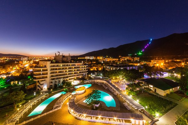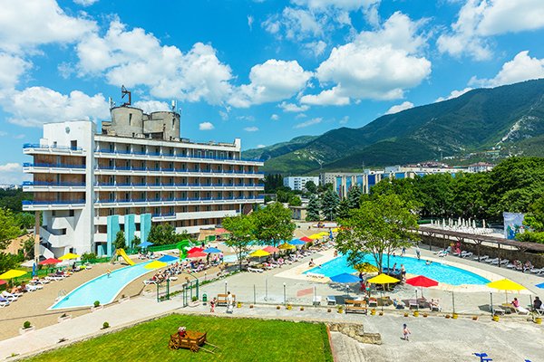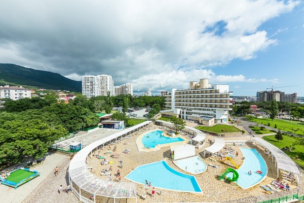Корпоративные мероприятия: Конференц-зал, оборудованный проектором, сплит-системой, экраном, микрофонами, аудиоаппаратурой, интернетом. Анимация: детский клуб с уроками танцев, рисования и сценического мастерства, библиотекой. Два детских бассейна, ежедневные анимационные программы, детская площадка, игровая комната, игровая терраса на открытом воздухе с настольным теннисом, бильярдом, аэрохоккеем. На детской площадке есть качели, песочница, игра «Смешарики». Услуги:заказ трансферов за дополнительную оплату и экскурсий, Wi-Fi в лобби на территории у бассейнов и на стойке регистрации, сейфовые ячейки, утреннее пробуждение по телефону, прокат бытового, пляжного и спортивного инвентаря. Услуги воспитателя в игровой комнате. Расчетный час: заезд в 14:00, выезд до 12:00. Дети: принимаются с 0 лет. Питание: по системе «все включено» завтраки, обеды и ужины «шведский стол», а также в течение всего дня работает СТАНЦИЯ ПРОМЕЖУТОЧНОГО ПИТАНИЯ с 10:00 до 20:00 со свежей выпечкой, пиццей, блинчиками с различной начинкой, мороженым, прохладительными и горячими напитками. В стоимость входит: проживание в номере выбранной категории, трехразовое питание «шведский стол» по 7-ми дневному меню; СНЕК-БАР: пица, осетинские пироги, хот-дог, сок в ассортименте двух видов, вода лимонная и минеральная, чай пакетированный в ассортименте, кофе, один вид пива, 4 вида вина кубанских производителей; Детское кафе: блины, вафли, выпечка, попкорн, мороженое, коктейль молочный, 3 вида газированного лимонада, 2 вида сока; пляж с дубовым настилом с зонтиками и шезлонгами, 4 открытых бассейна: взрослый, подростковый и 2 детских с горками, анимация на территории, игровая терраса - настольный теннис, бильярд, аэрохоккей, дартс; уличные тренажеры, детский городок - качели, песочница, горки; прокат - мячи, теннисные ракетки, скакалки, ракетки для бадминтона, шахматы, шашки; спортивные площадки для волейбола, мини-футбола, бадминтона, Wi-fi на территории - холлы корпусов, территория бассейнов. Необходимые документы: паспорт общегражданский, документ, подтверждающий оплату, для ребенка - справка о сан. эпидем. окружении, прививочный сертификат, свидетельство о рождении или его ксерокопия, страховой медицинский полис или его ксерокопия. Предоставление справок обязательно для детей возрастом с 2-х до 14-ти лет. Адрес: 343460, Россия, Краснодарский край, г. Геленджик, ул. Маячная, 9. Проезд: От аэропорта г. Анапа до автовокзала, от автовокзала рейсовым автобусом "Анапа – Геленджик" до автовокзала г. Геленджик. От аэропорта г. Краснодар до автовокзала г. Краснодар, от автовокзала рейсовым автобусом "Краснодар – Геленджик" до автовокзала г. Геленджик. От ж/д вокзала г. Новороссийск рейсовым автобусом "Новороссийск – Геленджик" до автовокзала г. Геленджик.