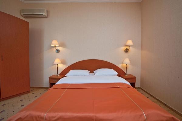 Стандарт Комфорт 2-местный 1-комнатный - площадь номера: 15 кв.м. В номере: двуспальная кровать, шкаф (обувная и одёжная щетки, пляжные полотенца (по количеству основных мест), плечики), столик под телевизор, стол туалетный, 2 прикроватные тумбы, стул, пуфик, лампа настольная, подчемоданник, телефон, мини-холодильник, телевизор, сплит – система, балкон.В ванной комнате: душевая кабина, зеркало, фен, коврик для ног, гостиничная косметика - мыло, гель для душа, шампунь, шапочка для душа гигиенические пакеты; комплект полотенец.