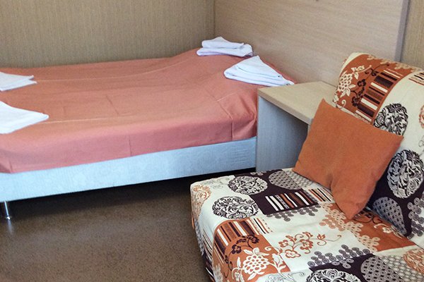 Стандарт 2-местный 1-комнатный - площадь номера: от 17 кв.м. Расположение номера: Корпус №2 В номере: 2 односпальные кровати, евро-раскладушка, шкаф (10 плечиков для одежды), стол-тумба, 2 прикроватные тумбы, 1 стул, пуфик, торшер или лампа настольная, подчемоданник, телефон, мини – холодильник, телевизор, сплит – система. В ванной комнате: душевая кабинка, зеркало, фен, комплект полотенец (банное, для лица, для рук, для ног).