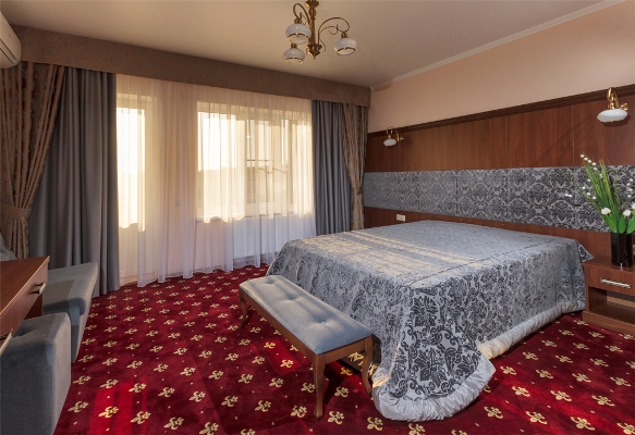 Дополнительное место – еврораскладушка или кресло-кровать, могут быть установлены без ограничения по возрасту. 2-х местный номер «Бизнес-Комфорт» с максимальным размещением 4-х человек, площадью 25-35 кв.м - телевизор, сплит-система, душ, туалет, холодильник, балкон, сейф, телефон, 1-но спальные или 2-х спальная кровать, диван.