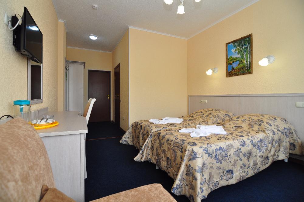 3-местный стандарт без балкона - макс. 3+1 чел., Wi-Fi, телевизор, кондиционер, тапочки, 1-спальные кровати, мини-холодильник, душевая кабина/ванна, санузел. Доп. место - кресло-кровать, или еврораскладушка, может быть установлена без ограничения по возрасту.
