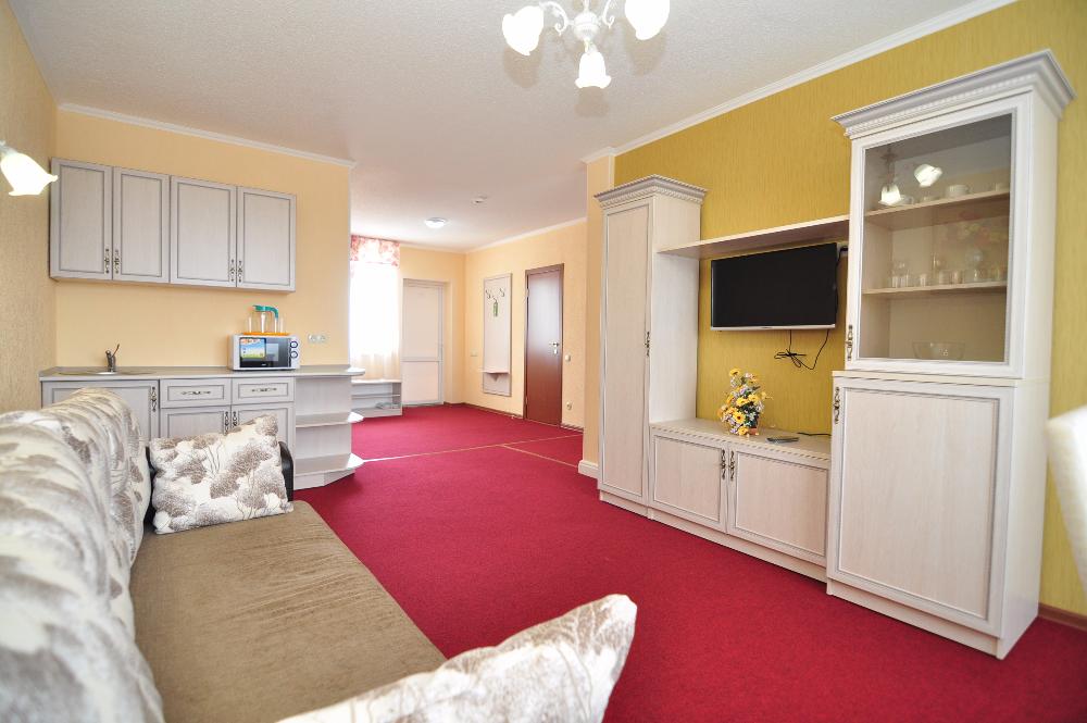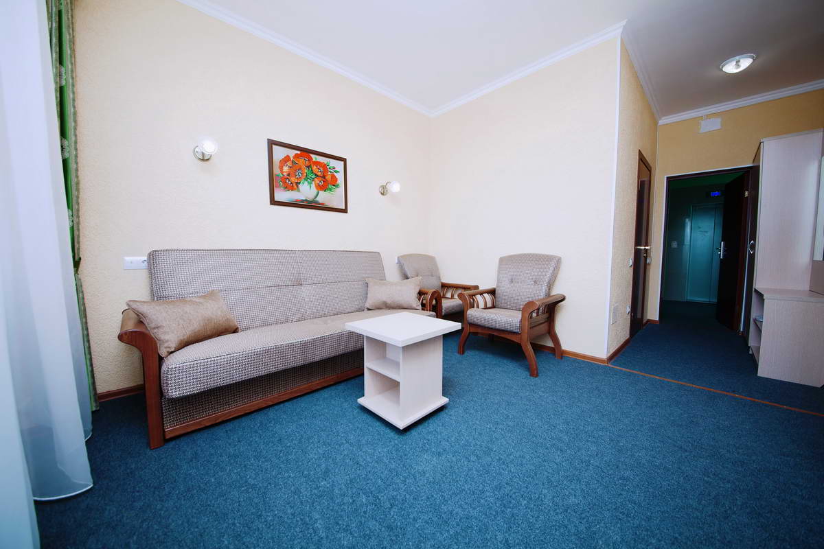 2-местный 2-комнатный люкс - макс. 2+2 чел., 35 кв. м, Wi-Fi, телевизор, кондиционер, халаты, тапочки, холодильник, балкон, мягкая мебель, 2-спальная кровать, чайник, душевая кабина, набор посуды. Доп. место - диван, может быть установлен без ограничения по возрасту.