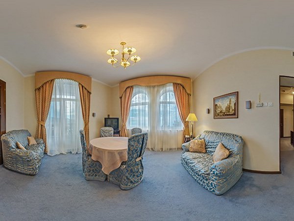 полулюкс 2-местный 2-комнатный, Корпус Салют - вешалка, еврораскладушка, зеркало, кресло-кровать, кровать двуспальная, набор мягкой мебели, прикроватные тумбочки, стол, стулья, шкаф, шкаф-купе. Оборудование набор посуды, пляжные полотенца, радио, сейф, система общего кондиционирования, телевизор ЖК, телефон, холодильник, чайный набор посуды. Санузел с ванной, таз, тапочки, туалетные принадлежности, фен, халат. Балкон с мебелью и сушилкой. Кол-во доп. мест 1.