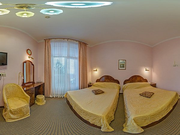 стандартный 1-местный без балкона, Корпус Салют, Олимп – вешалка, зеркало, кровать полутороспальная, прикроватные тумбочки, стол, стулья, шкаф-купе. Оборудование пляжные полотенца, радио, система общего кондиционирования, телевизор, телефон, холодильник. Санузел с ванной, таз, тапочки, туалетные принадлежности, фен, халат.